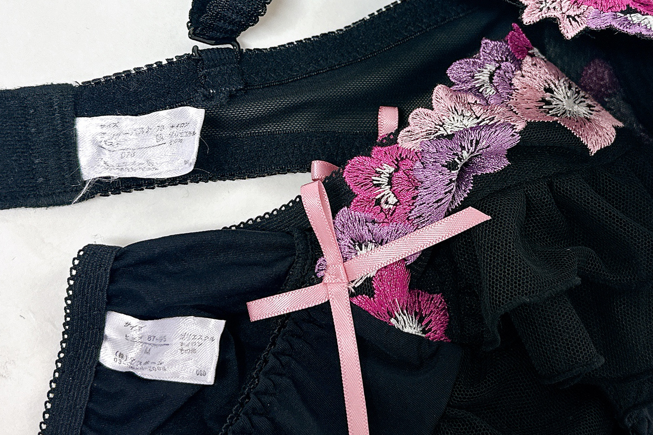 1279 花柄ブラジャー&ショーツ  上下セット D70M  ブラック系