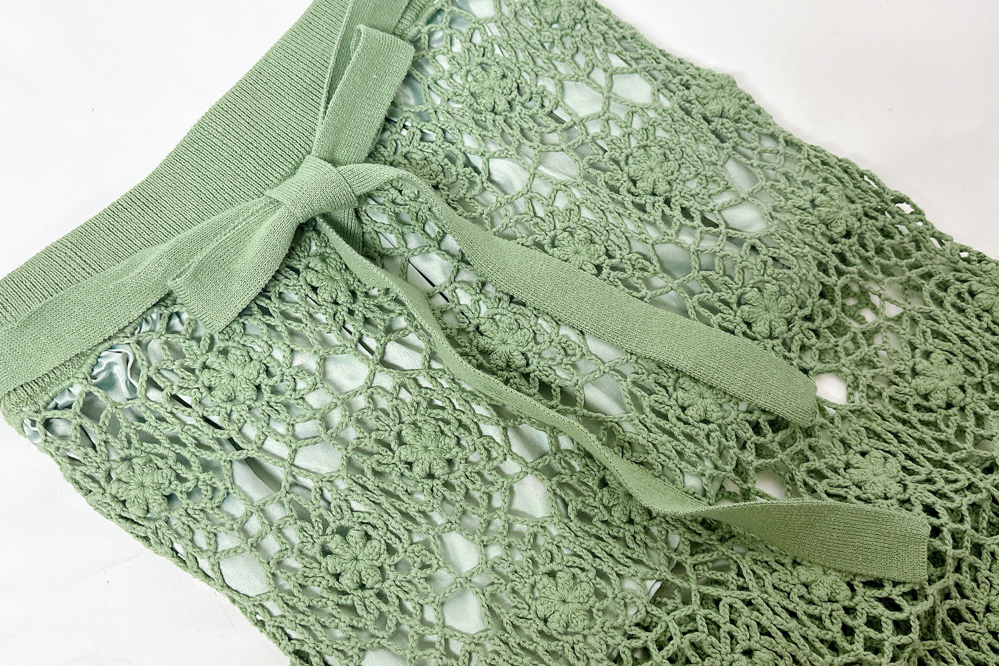 使用済み 透け感たっぷりオーバーレースミニスカート グリーン F