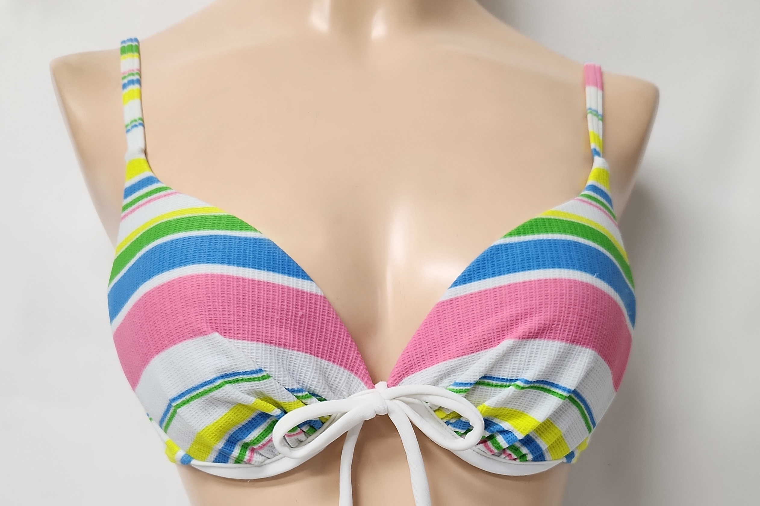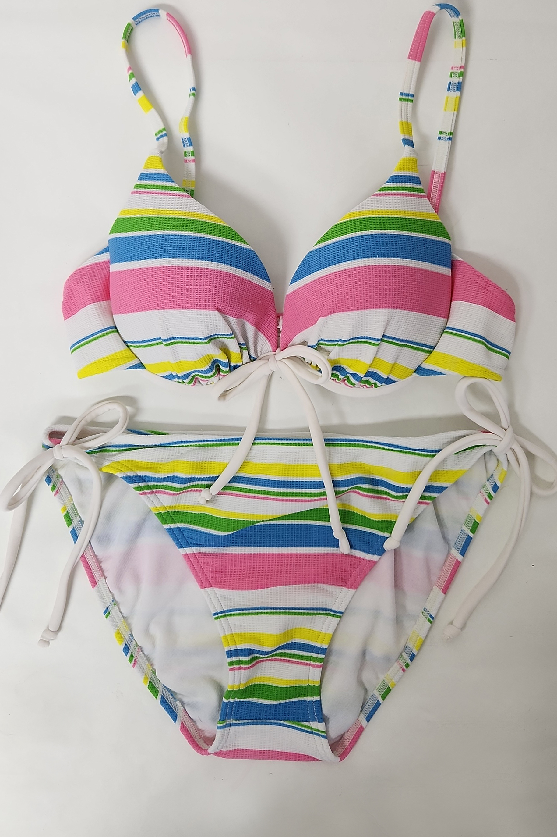 1288 使用済み 水着  中古  ビキニ   可愛いカラフルボーダービキニ  ホワイト系 11L