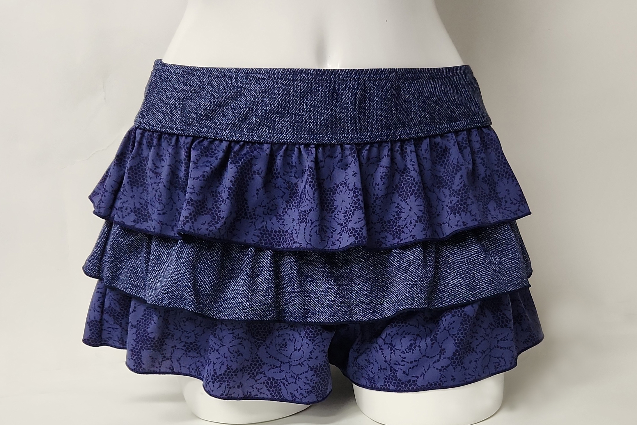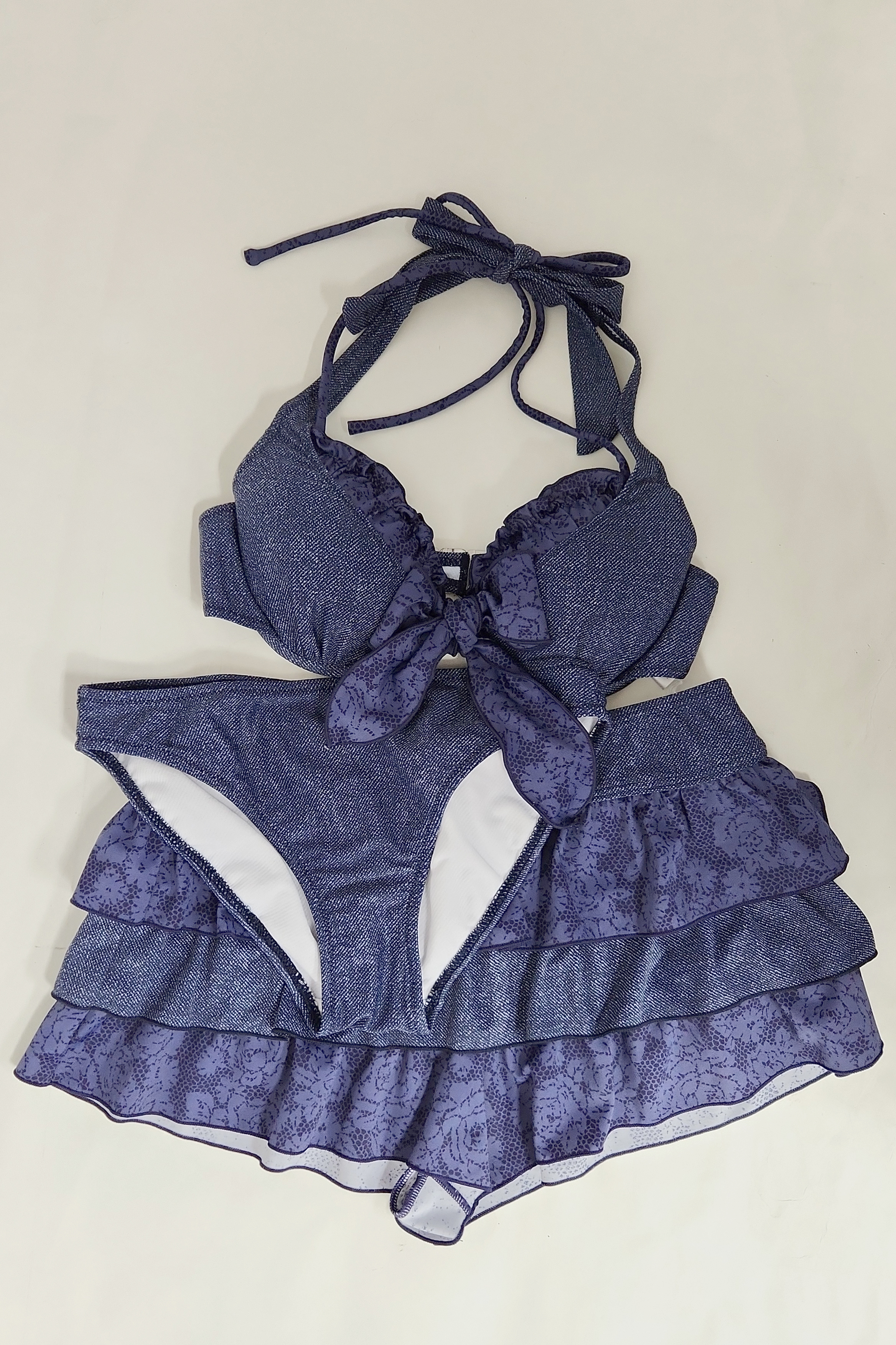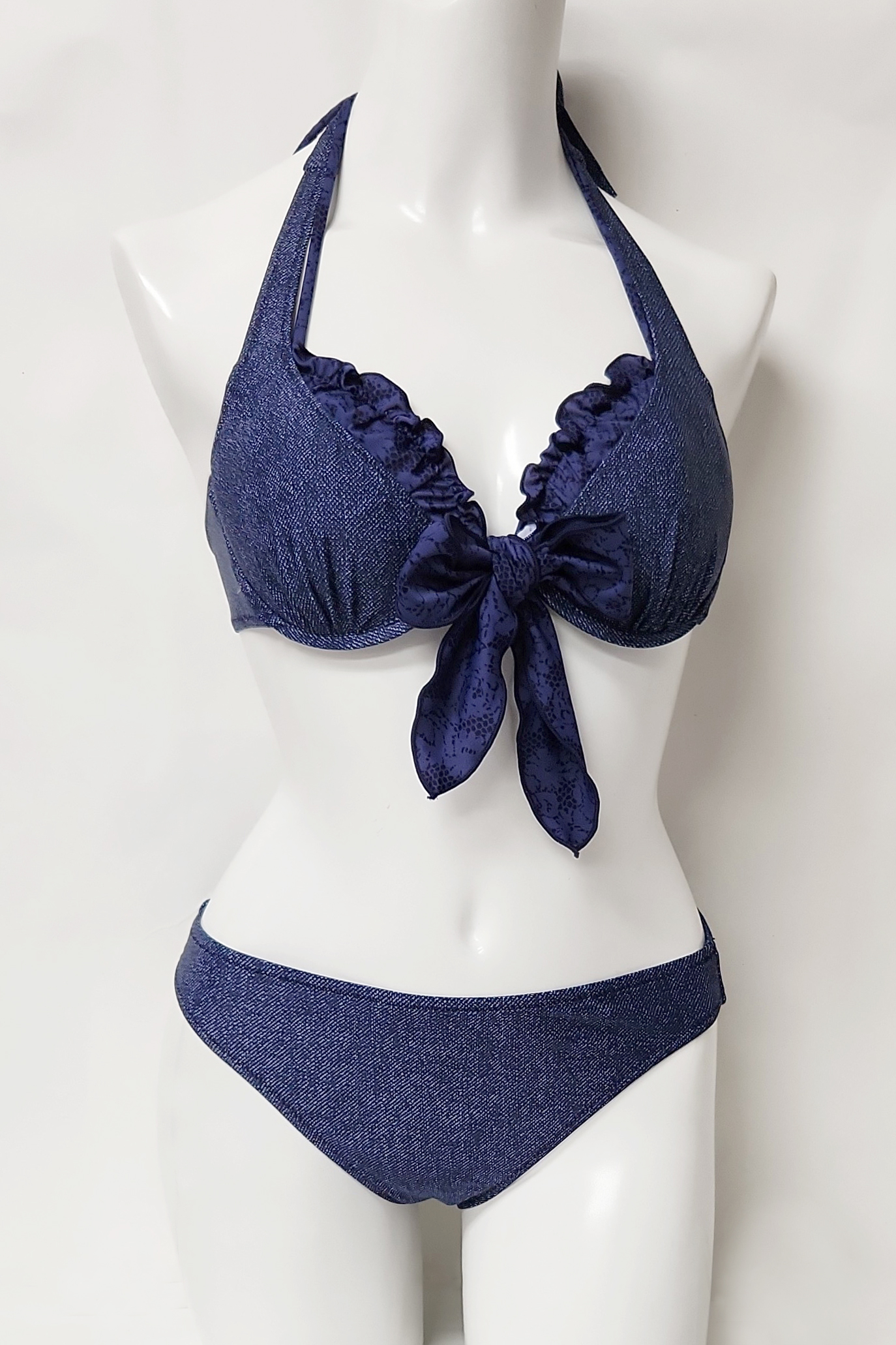 1297 使用済み 水着  中古  ビキニ3点セット デニム調プリント 紺系 9M