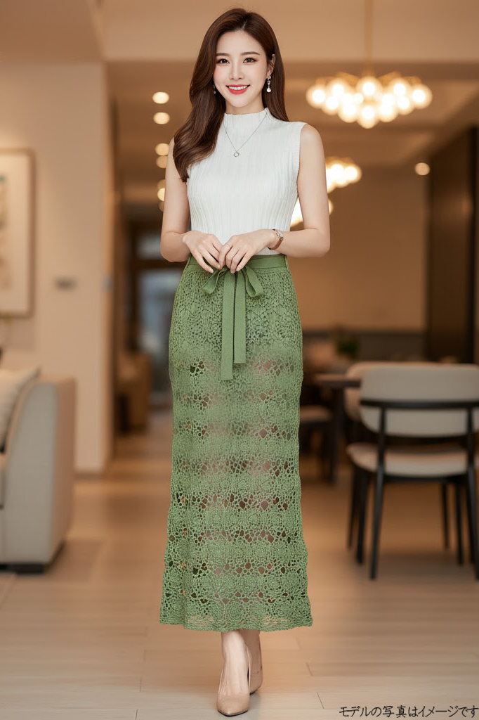 使用済み 透け感たっぷりオーバーレースミニスカート グリーン F