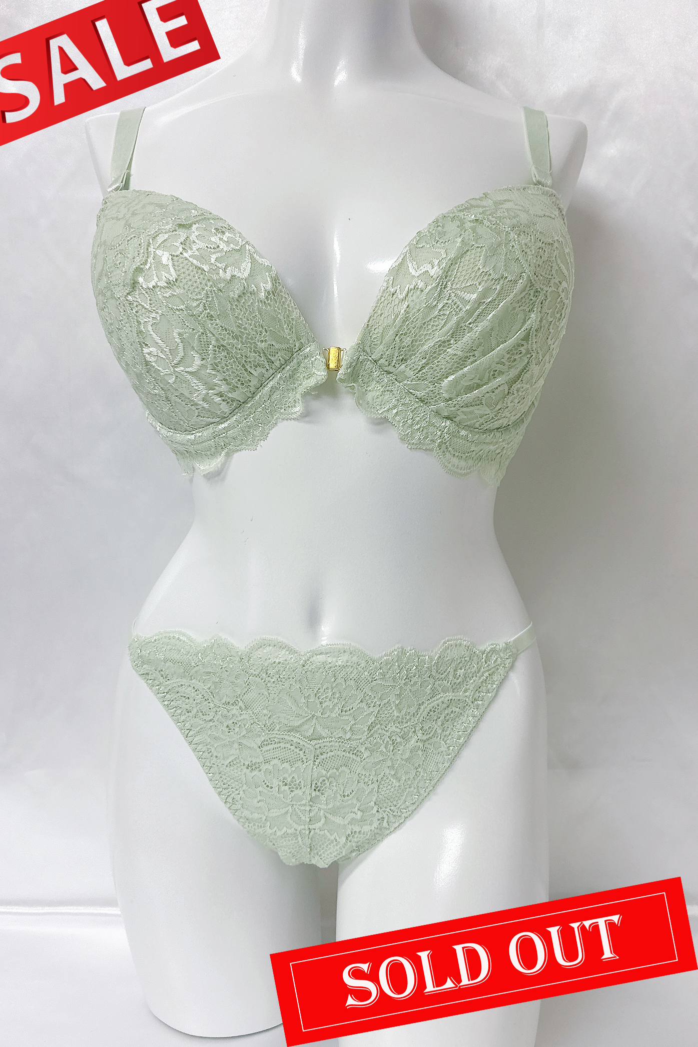大きいサイズのブラ&ショーツ 自然なバストライン~フロントホック グリーン E85 D95