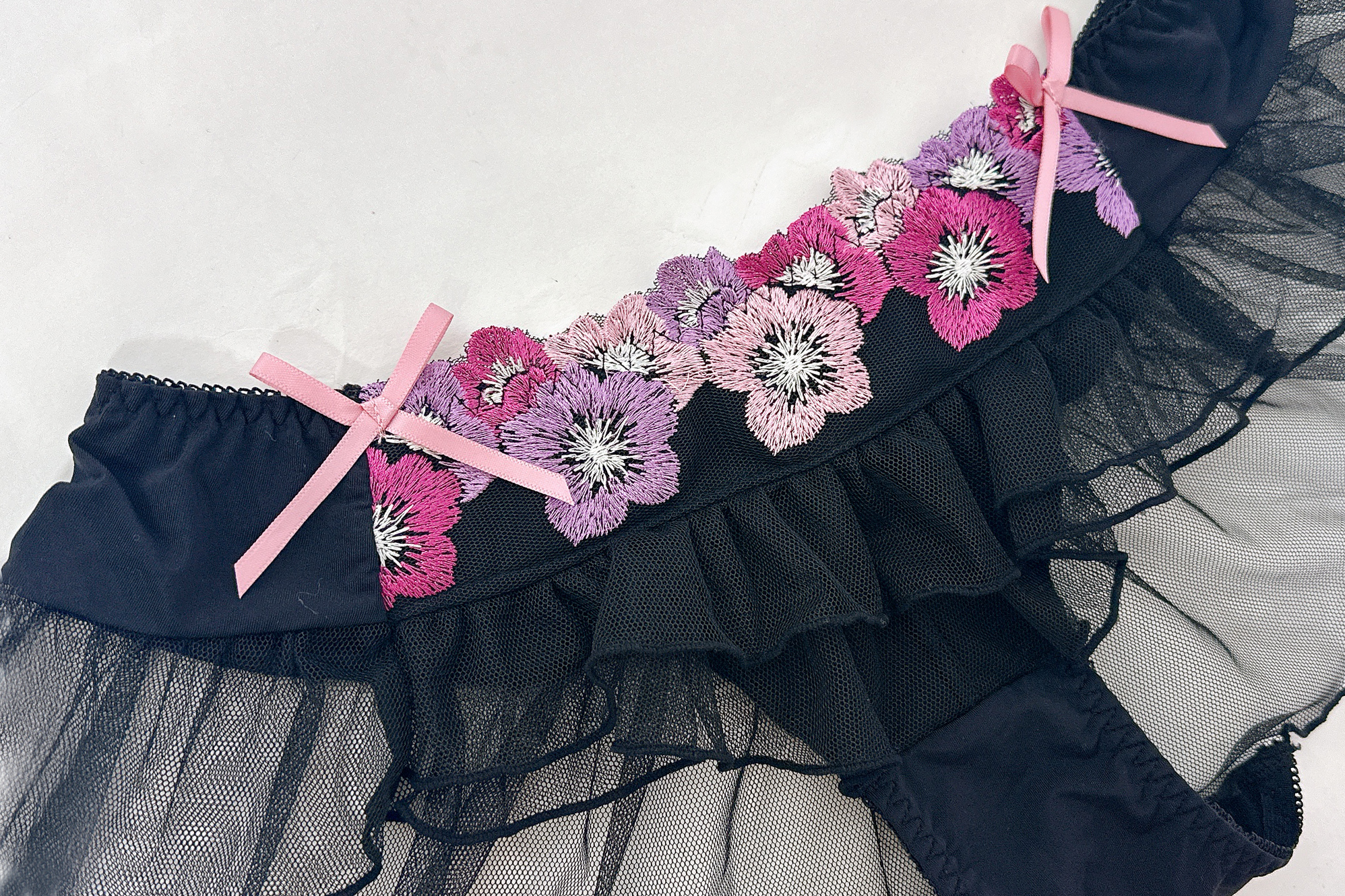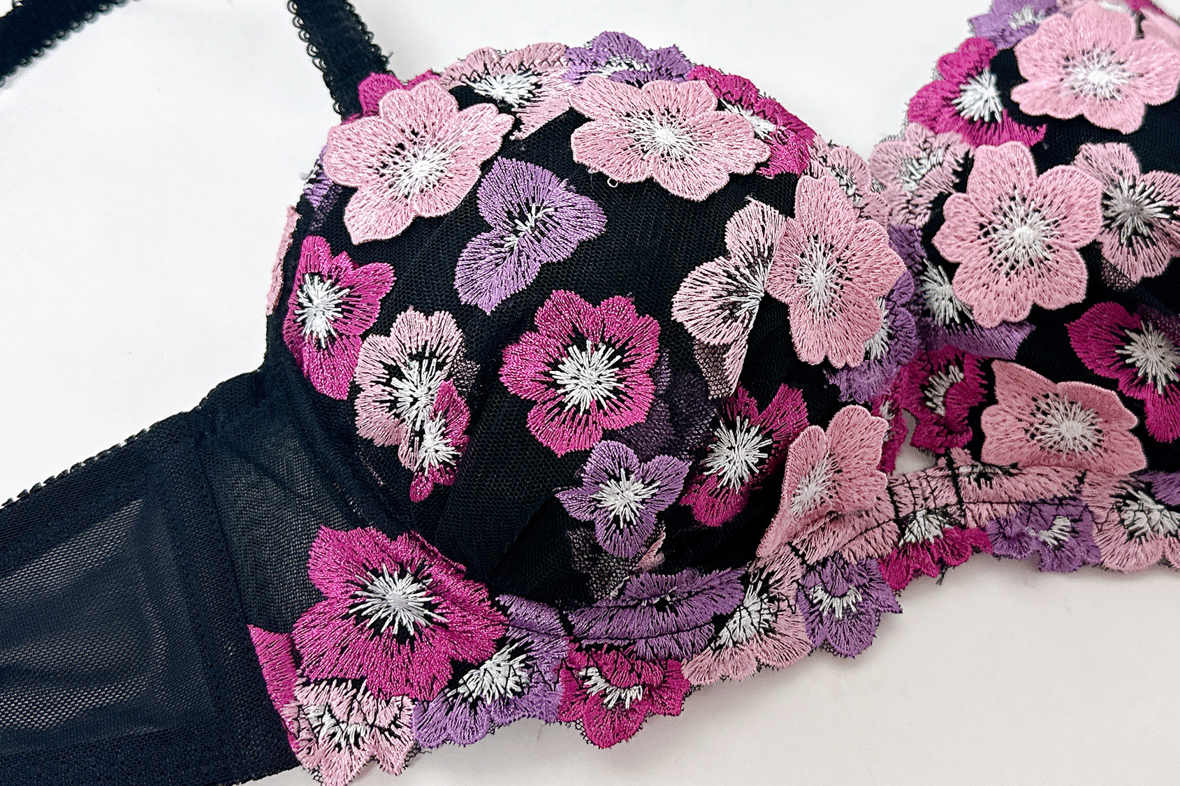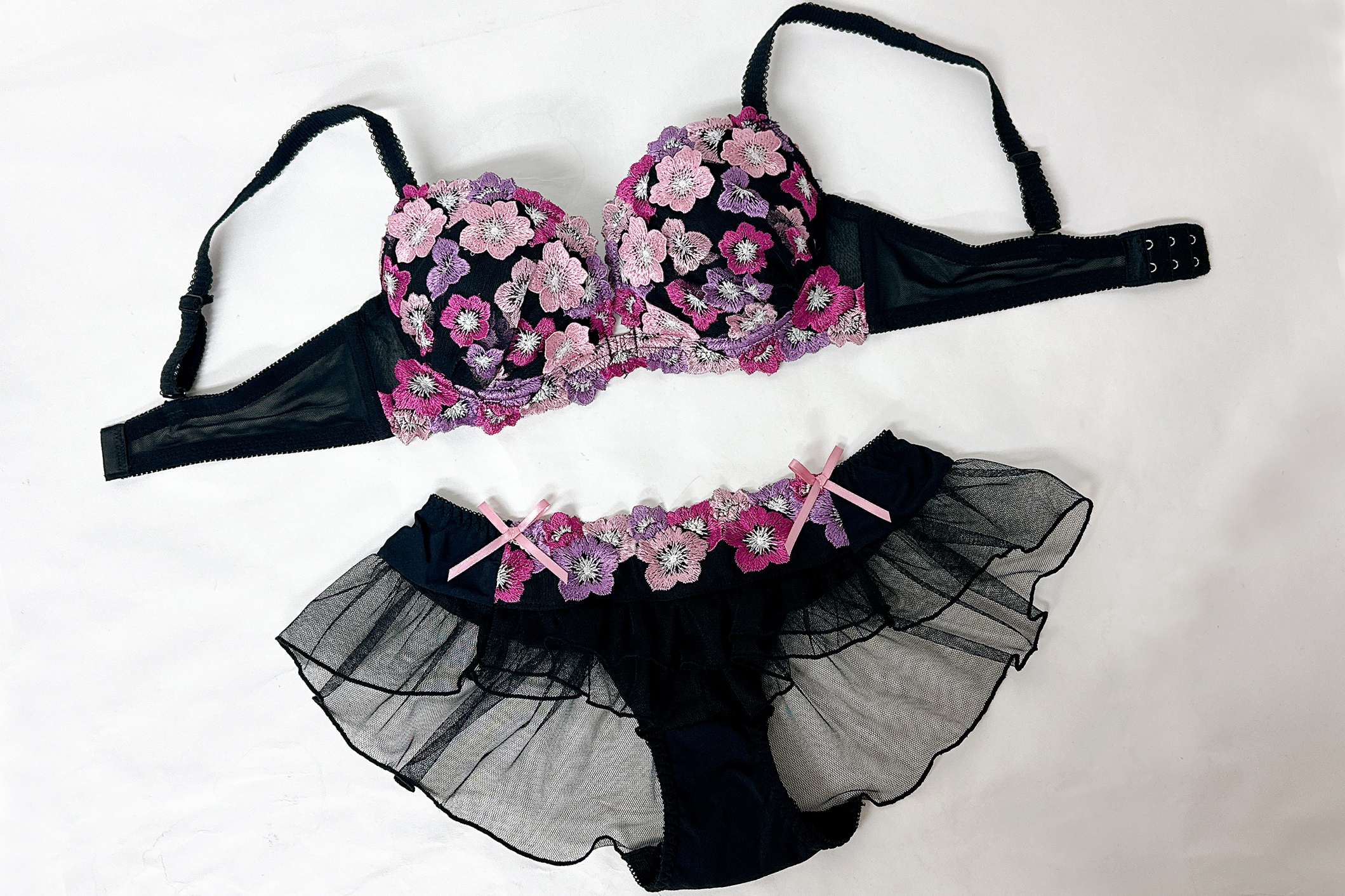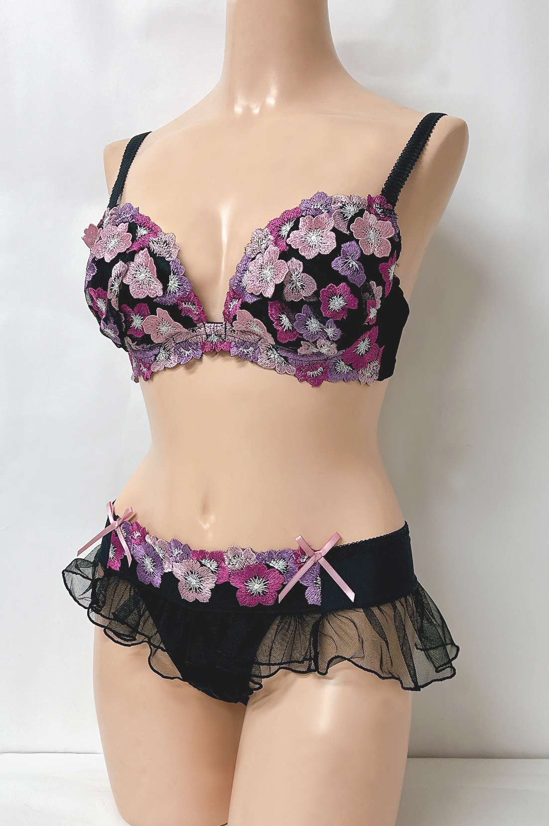 1279 花柄ブラジャー&ショーツ  上下セット D70M  ブラック系