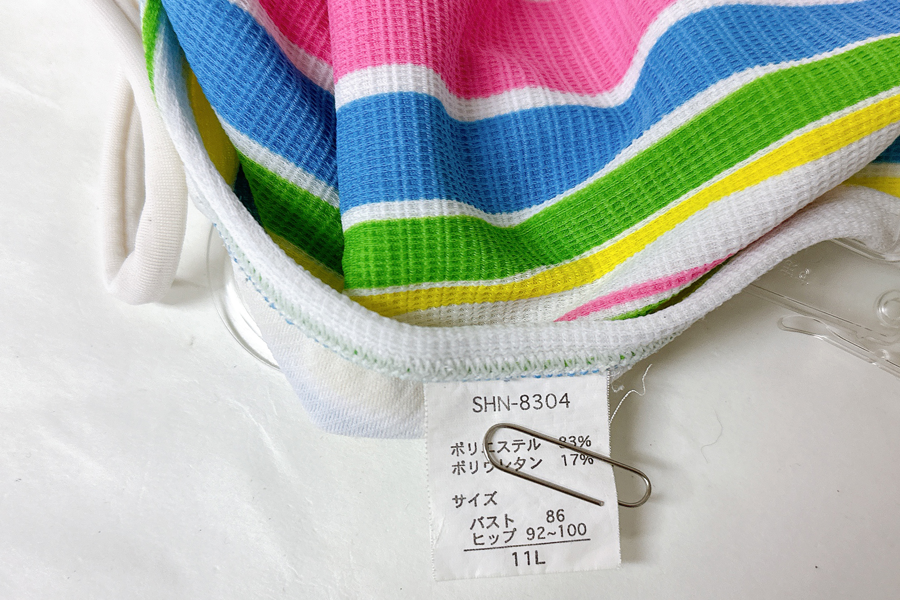 1288 使用済み 水着  中古  ビキニ   可愛いカラフルボーダービキニ  ホワイト系 11L