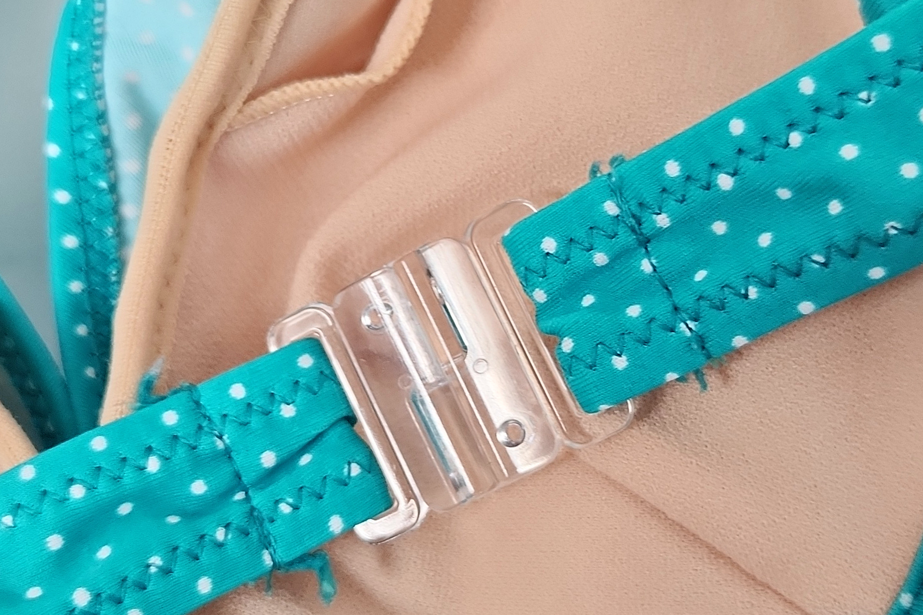 ターコイズ系のドット柄ビキニです。