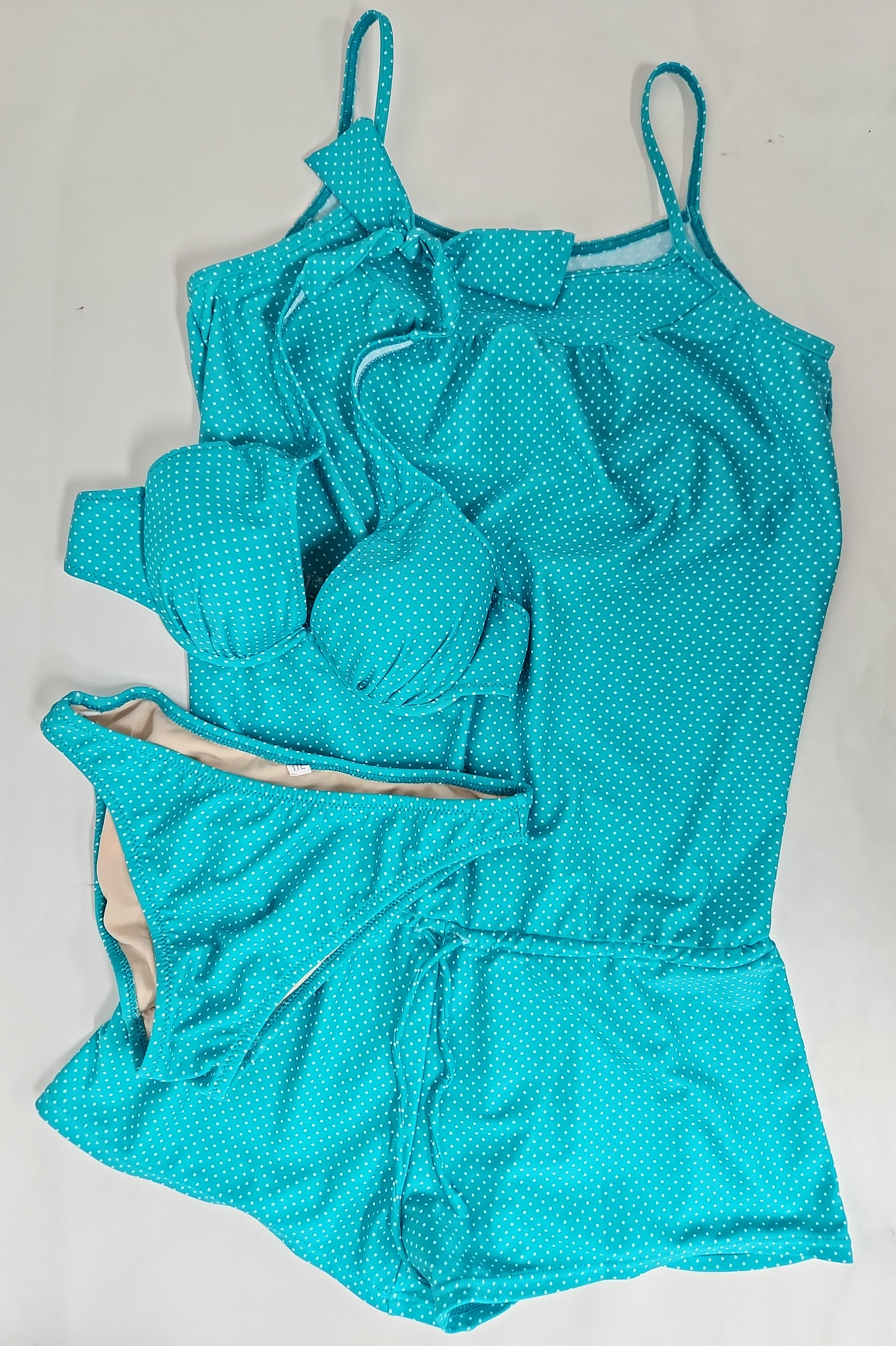 1291 使用済み 水着  中古  ビキニ3点セット  ドット柄ビキニ ターコイズブルー系 11L