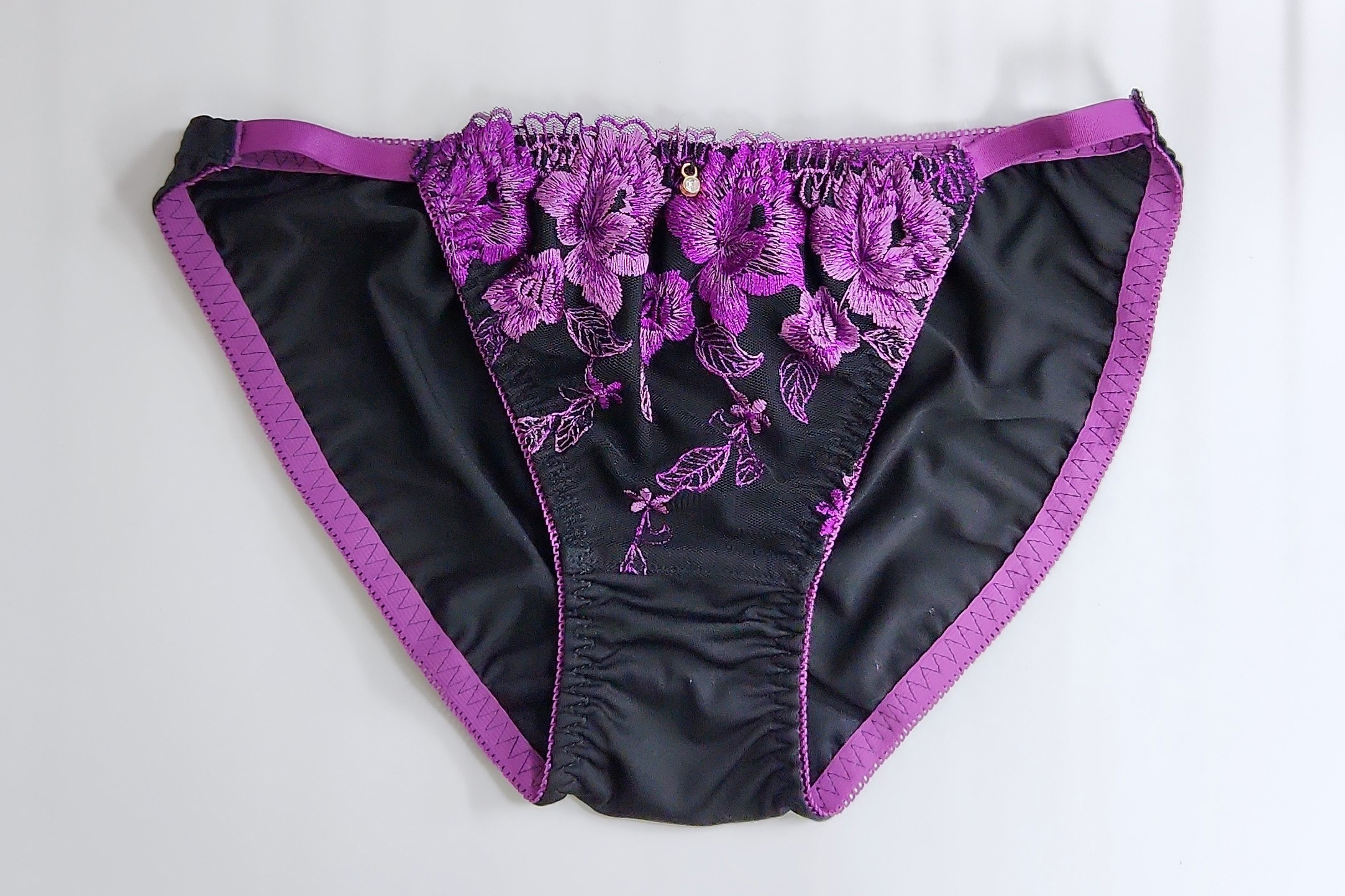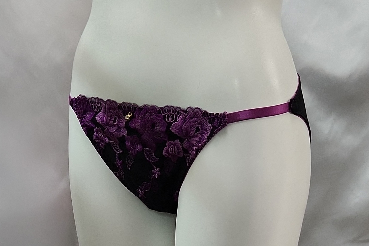 ・フロントの花柄レースがエレガントさを醸し出し、さらに両サイドの細いゴムがセクシーさを印象付けます。