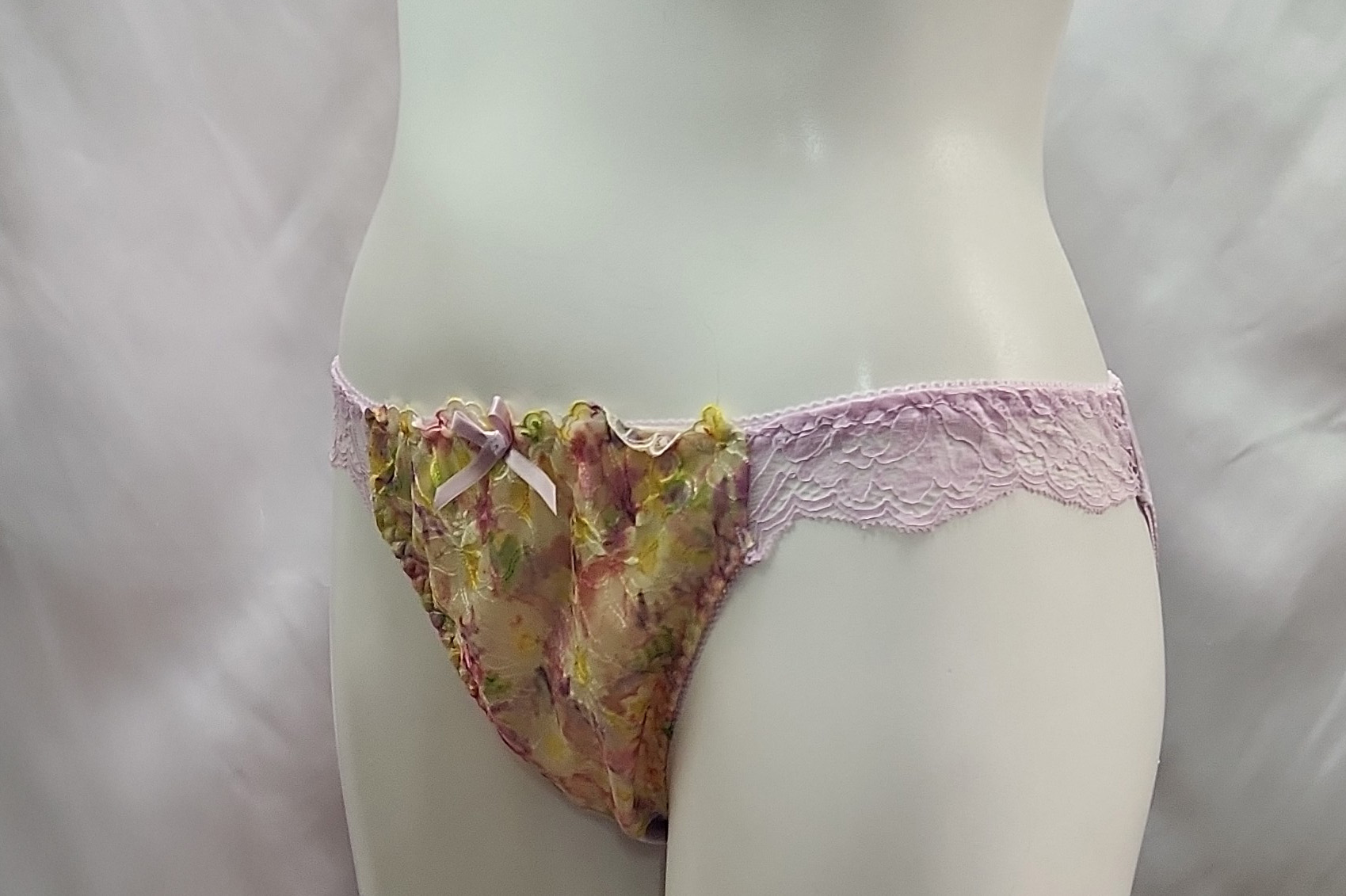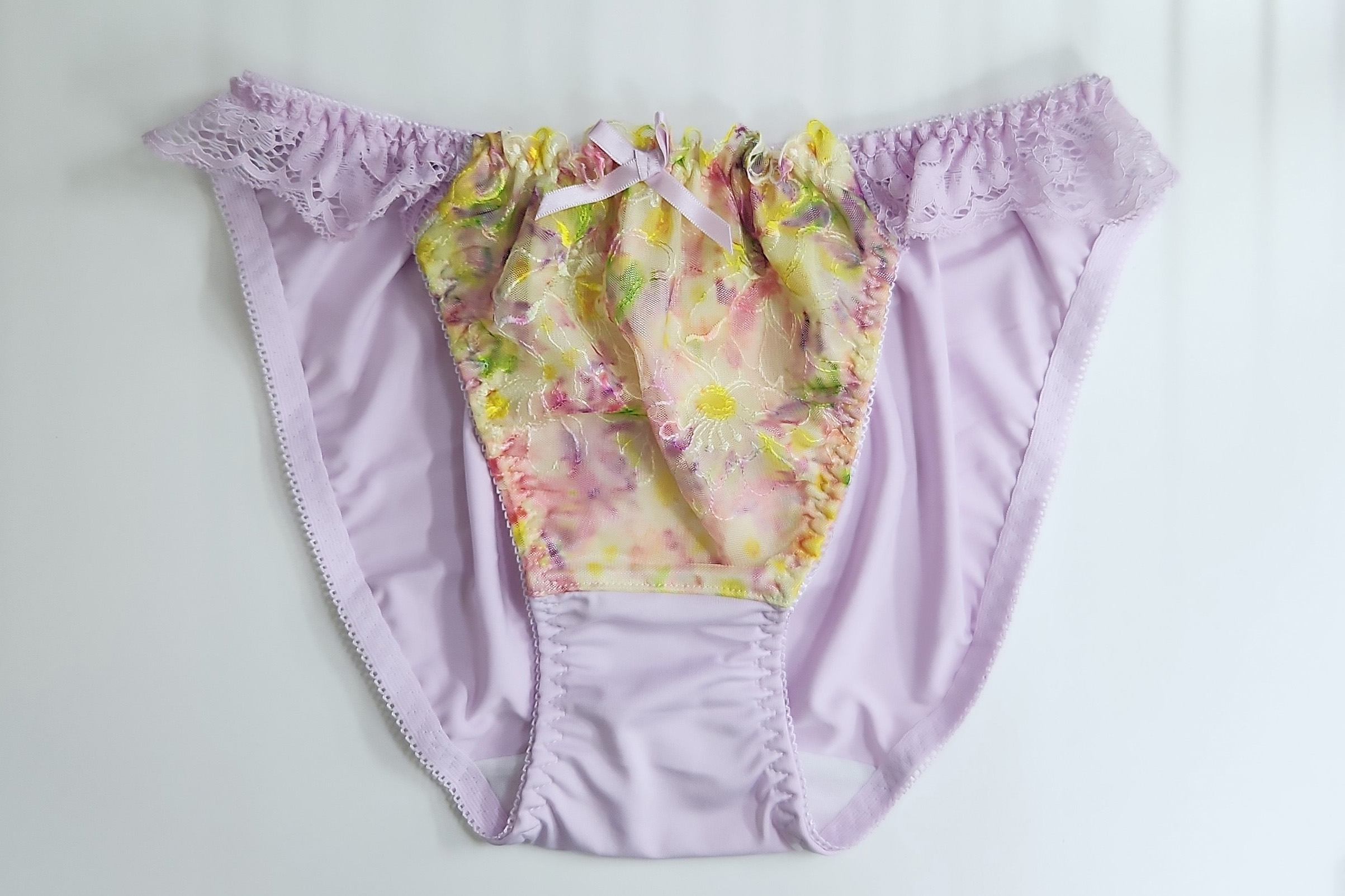 ・フロントの花柄レースがエレガントさを醸し出し、さらに両サイドの細幅のレースがセクシーさを印象付けます。