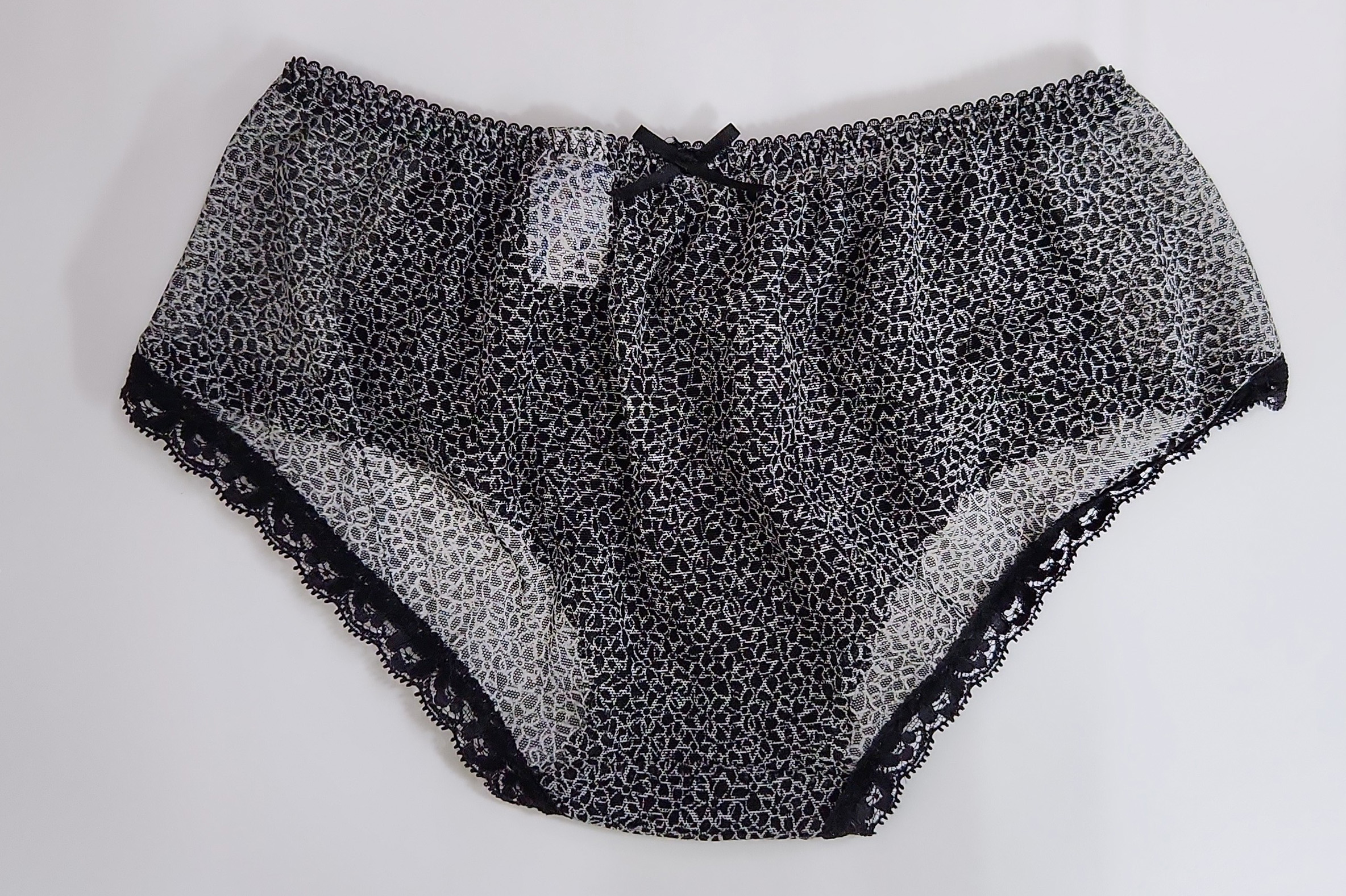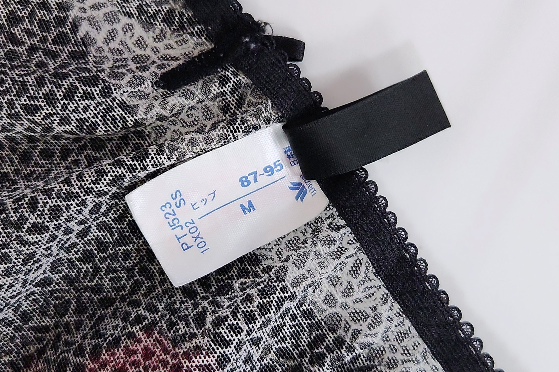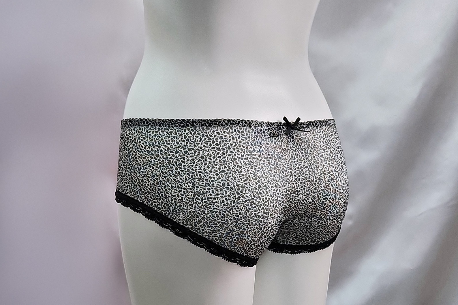 お姉さんが履いたフロントが艶やかなバラの刺繍のハーフバックショーツです。