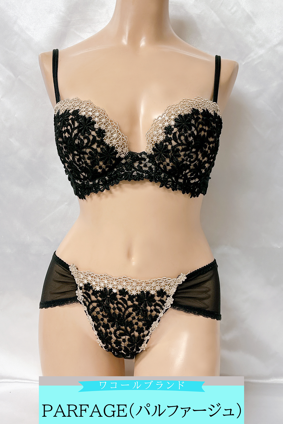 ワコールの高級ブランド PARFAGE パルファージュ ブラジャー&ショーツ上下セット D70 ブラック