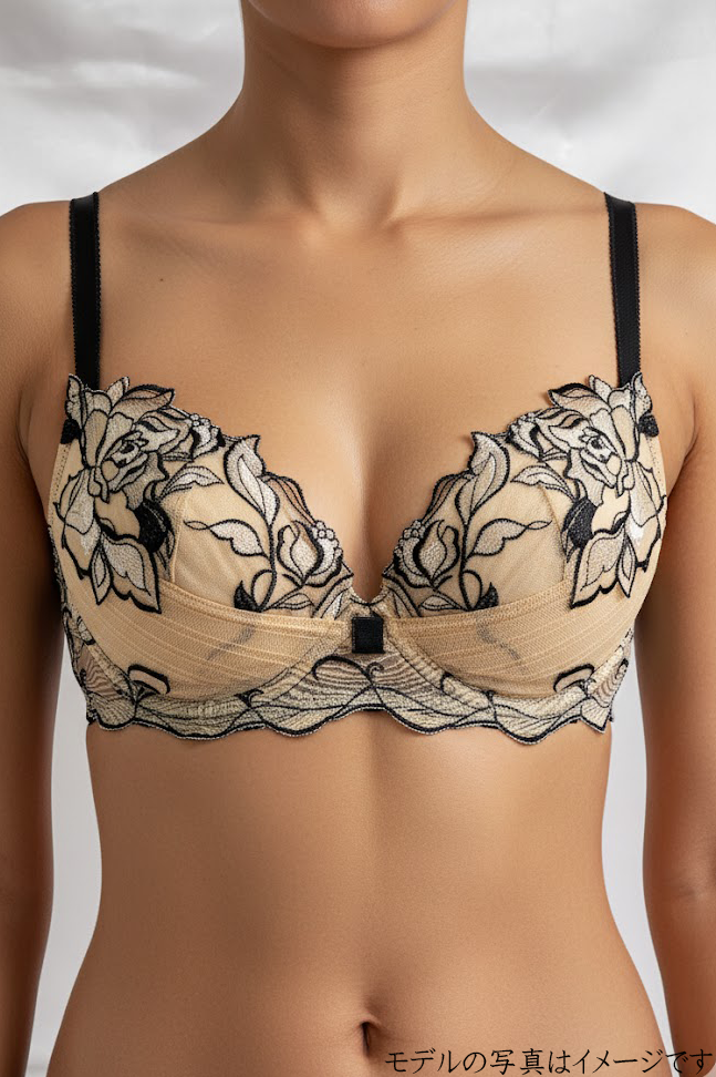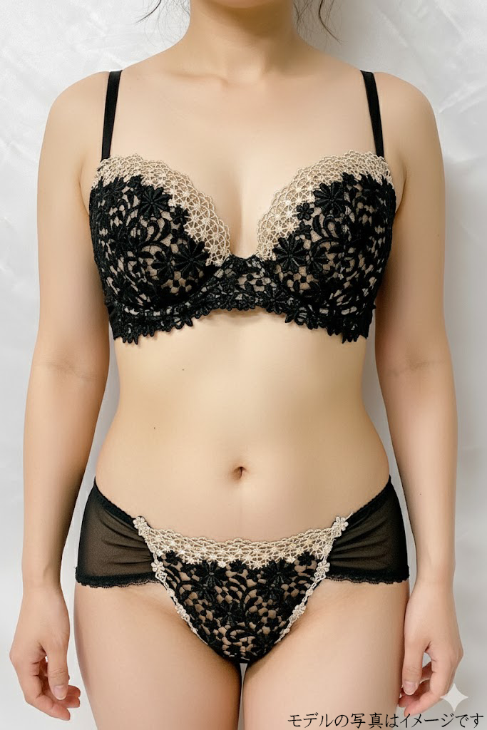 1279 花柄ブラジャー&ショーツ 上下セット D70M ブラック系