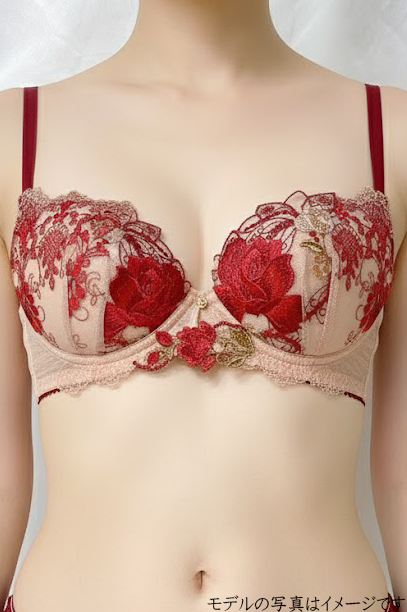 1276 花柄ブラジャー&ショーツ 上下セット C75M レッド系